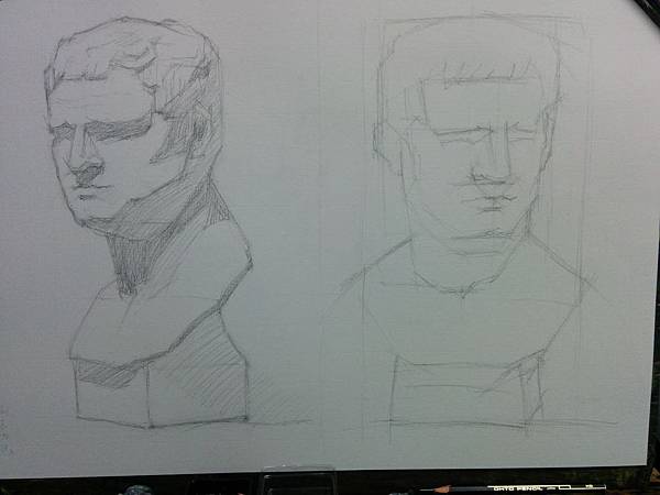 老師說阿古力巴是個五官比例較清楚的石膏,所以一開始用它來練習是很好的。意思就是阿古力巴應該是個帥哥吧?