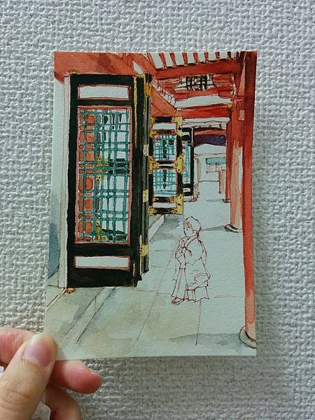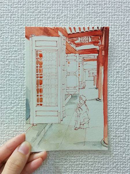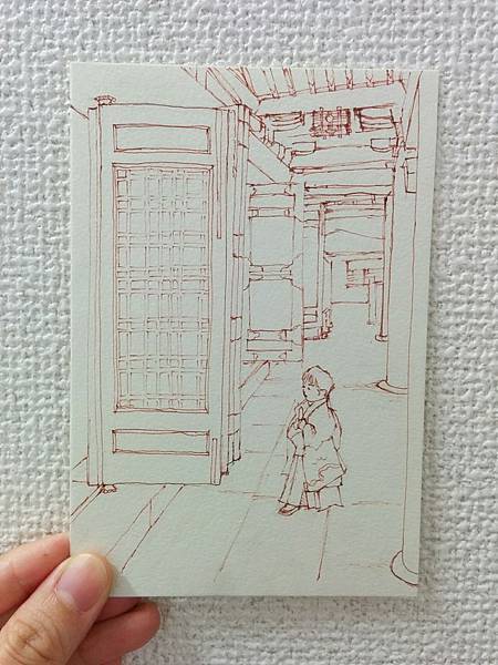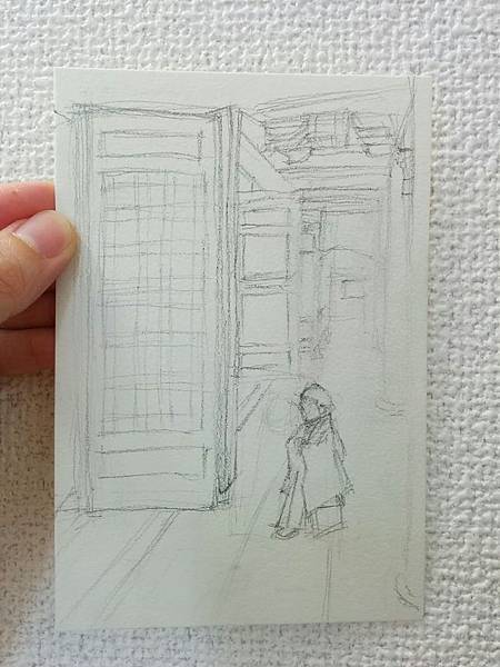 因為照片和明信片的比例不太一樣,所以加上構圖,草稿就重畫了兩三次