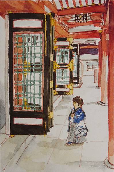 ↑最後主角上色完畢,小朋友的和服非常可愛,因為大家都三五頭身,看起來像洋娃娃一樣(笑)