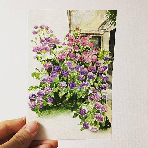 從川越回來後,就覺得要來挑戰一下畫繡球花的明信片,畢竟我也曾經下定決心要畫日本四季名物(?)