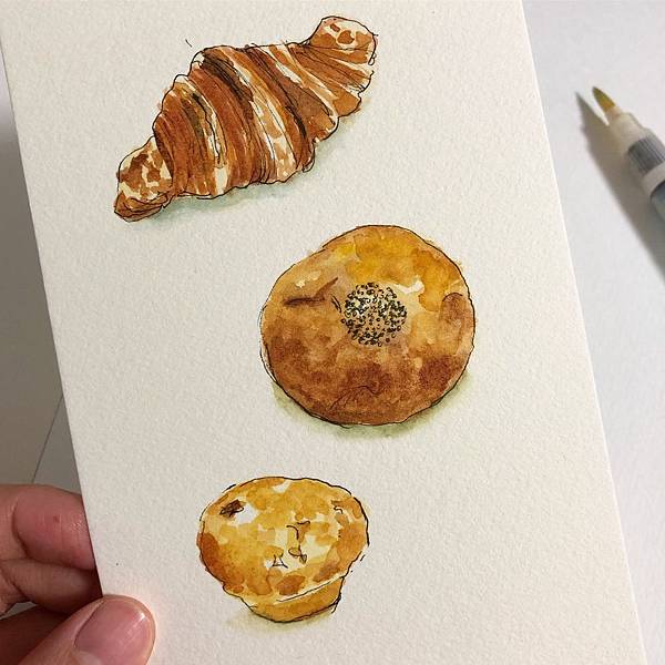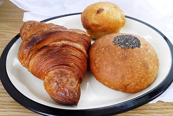 買了牛角麵包、紅豆麵包、巧克力麵包準備帶回家當早餐~