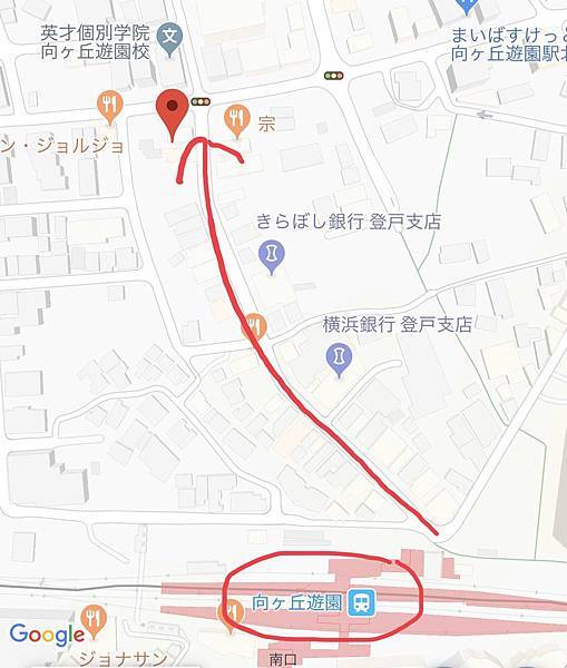 從向丘園地南口出站對面(旁邊有羅森超商)