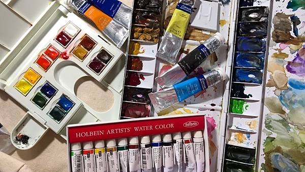 關於水彩顏料,可以看我之前寫過的水彩-我的調色盤 有介紹一些溫莎牛頓跟日本好賓~