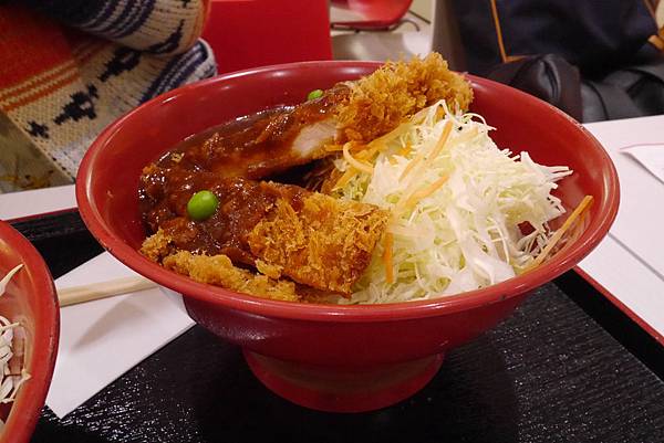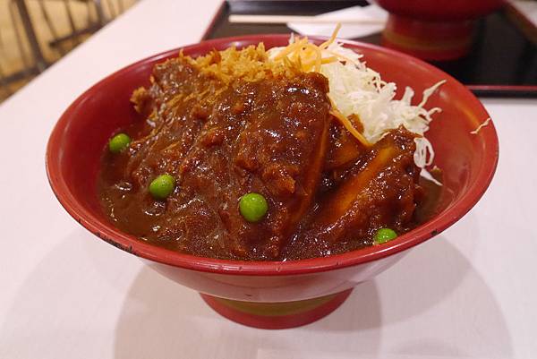 醬汁的口味有點難以形容,有點像台灣鐵板麵的醬汁,多了一點味噌的甜鹹。豬排炸得很酥,是屬於偏薄的麵包粉,豬肉很嫩易咬斷。
