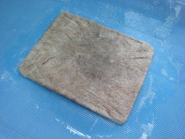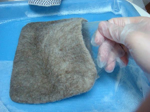 然後要繼續努力的搓、壓、捲、折,一直倒入熱水和加上泡泡,不斷使他氈化...